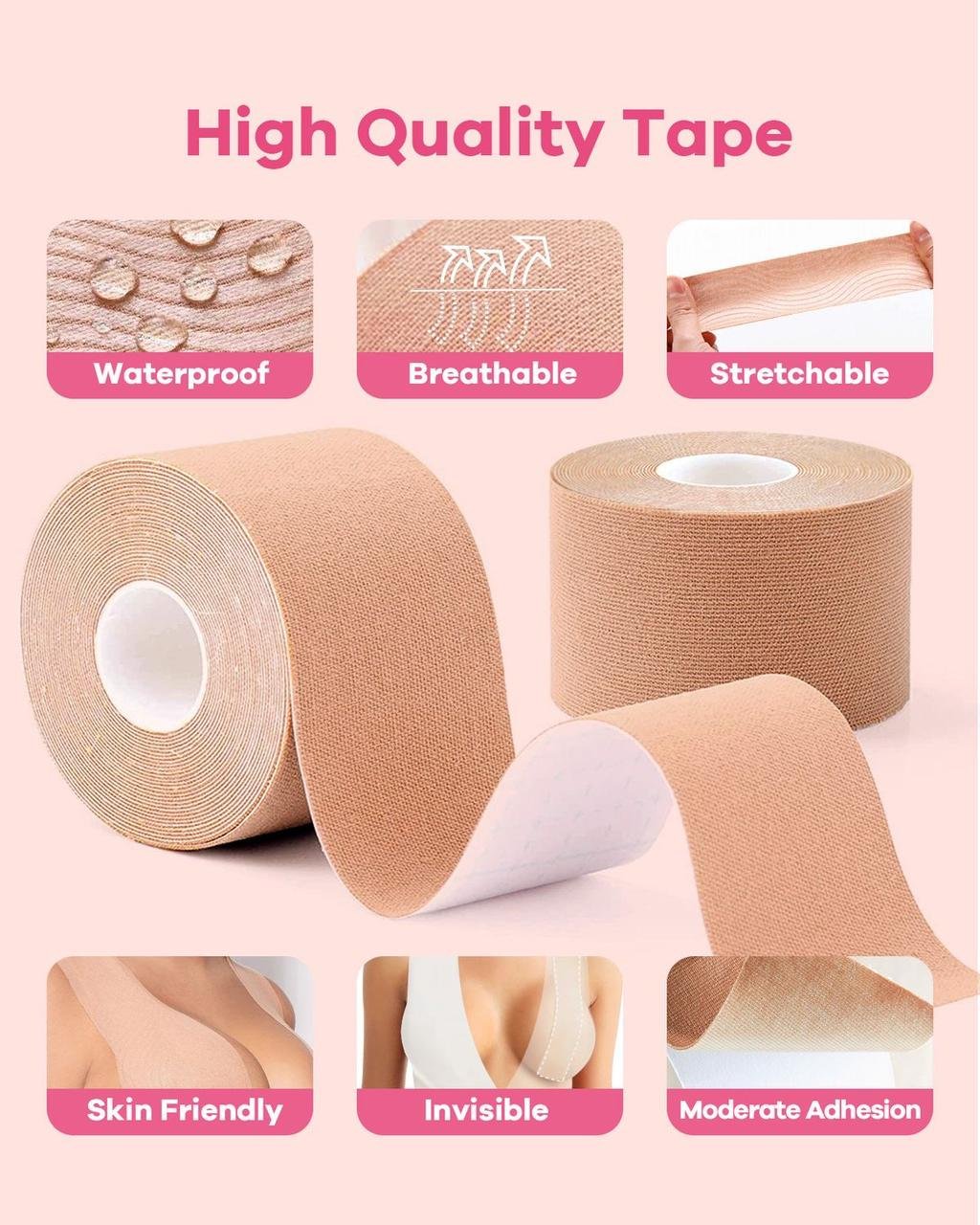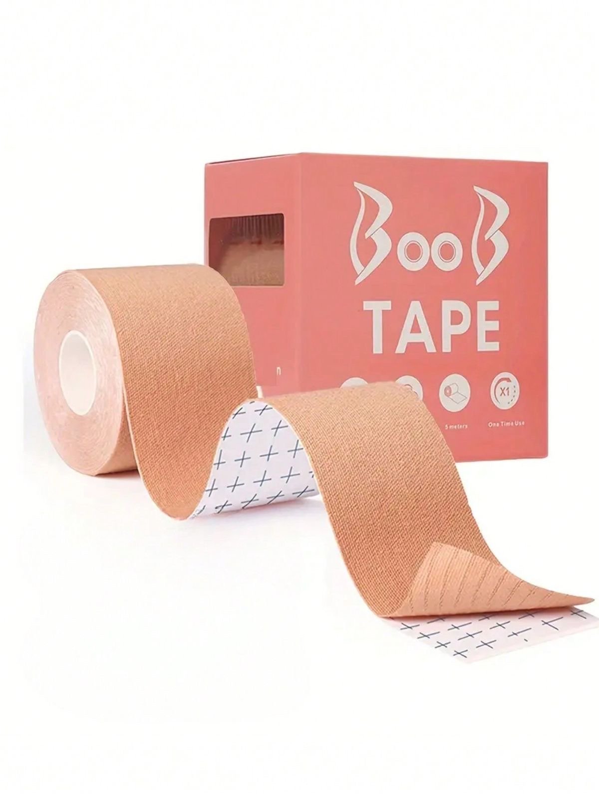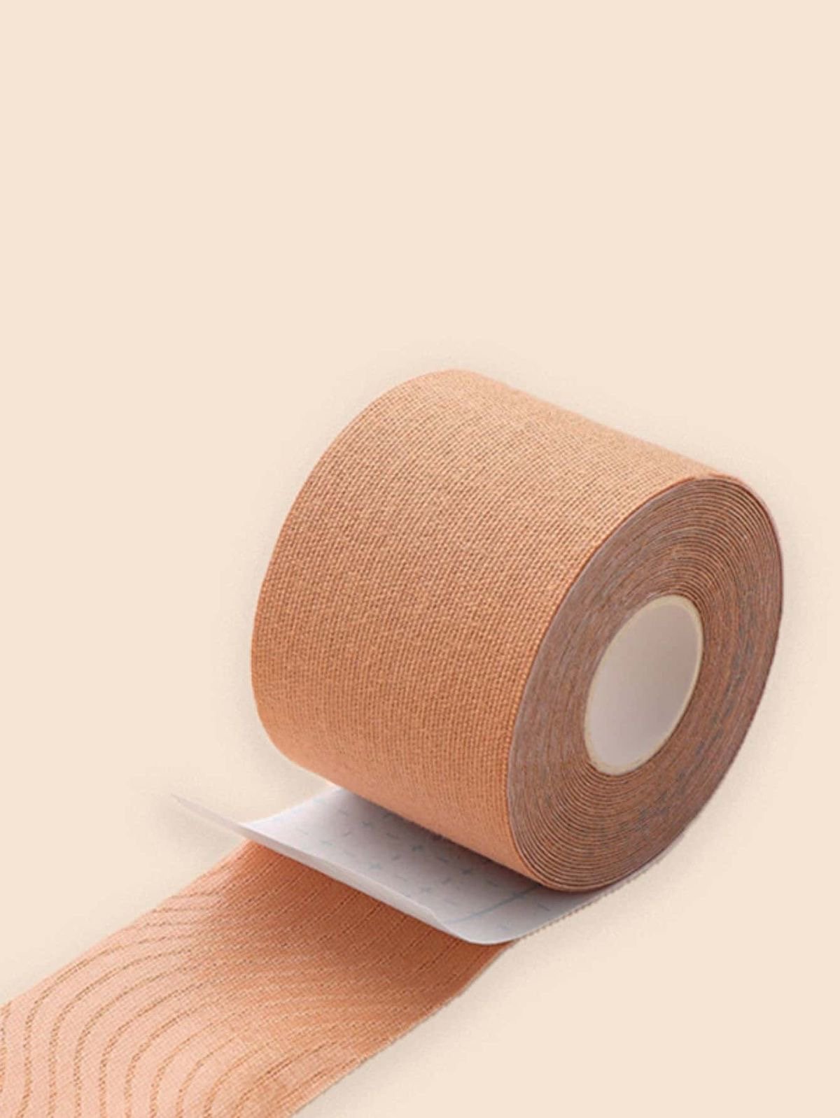 Cut-to-fit boob tape offering customizable lift and support. 5m roll, 2-inch wide. Cotton material, strong adhesive. One-time use.