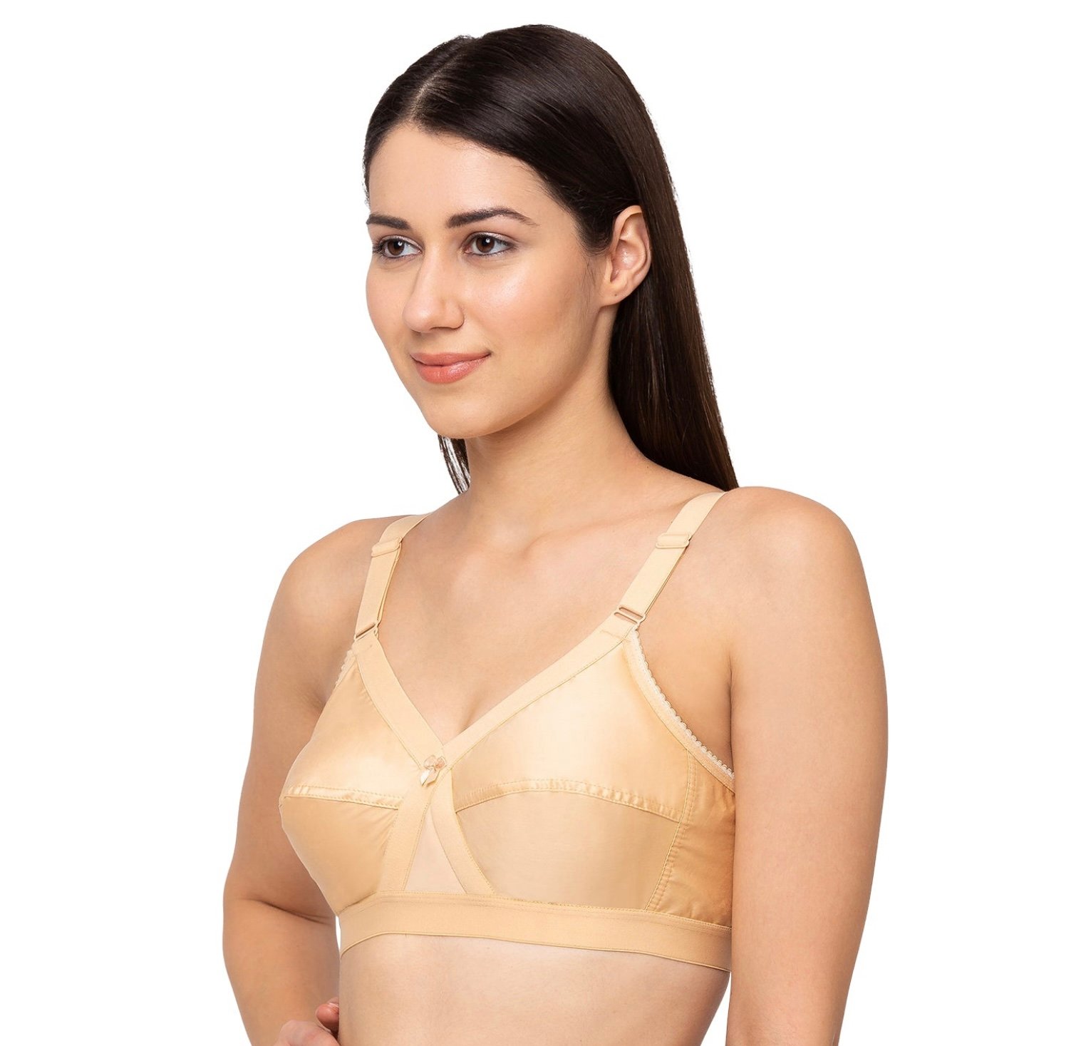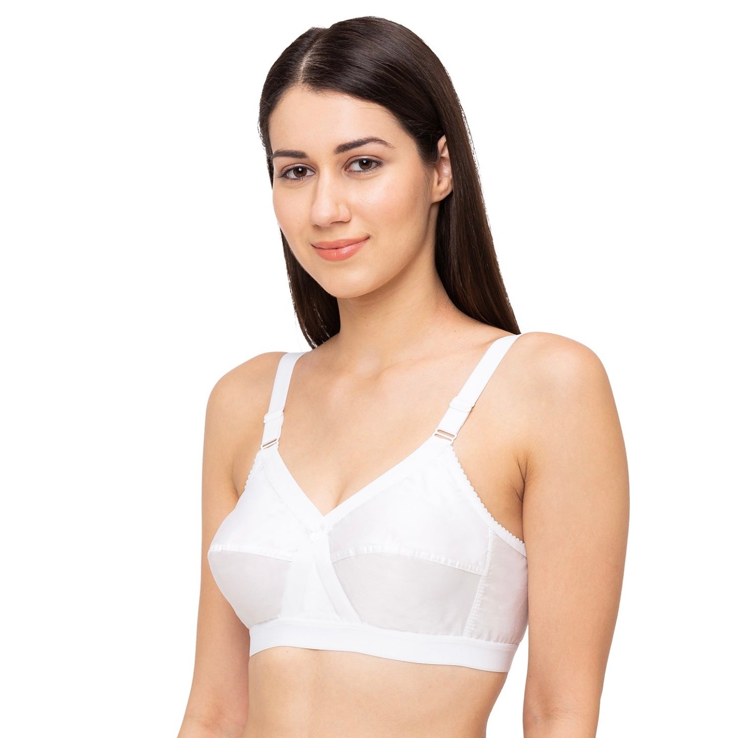 This Juliet bra is a non-padded, full-coverage, cut & sew cotton bra designed to provide maximum support and natural shaping. Crafted thoughtfully for your everyday lifestyle, it ensures comfort and confidence whether you are relaxing at home, managing daily chores, or heading out for special occasions. The side stitches enhance the fit and give a minimizing look, while the soft cotton fabric keeps you cool and comfortable all day long. With its timeless design and reliable support, this bra is a versatile wardrobe essential for women who value both style and functionality.