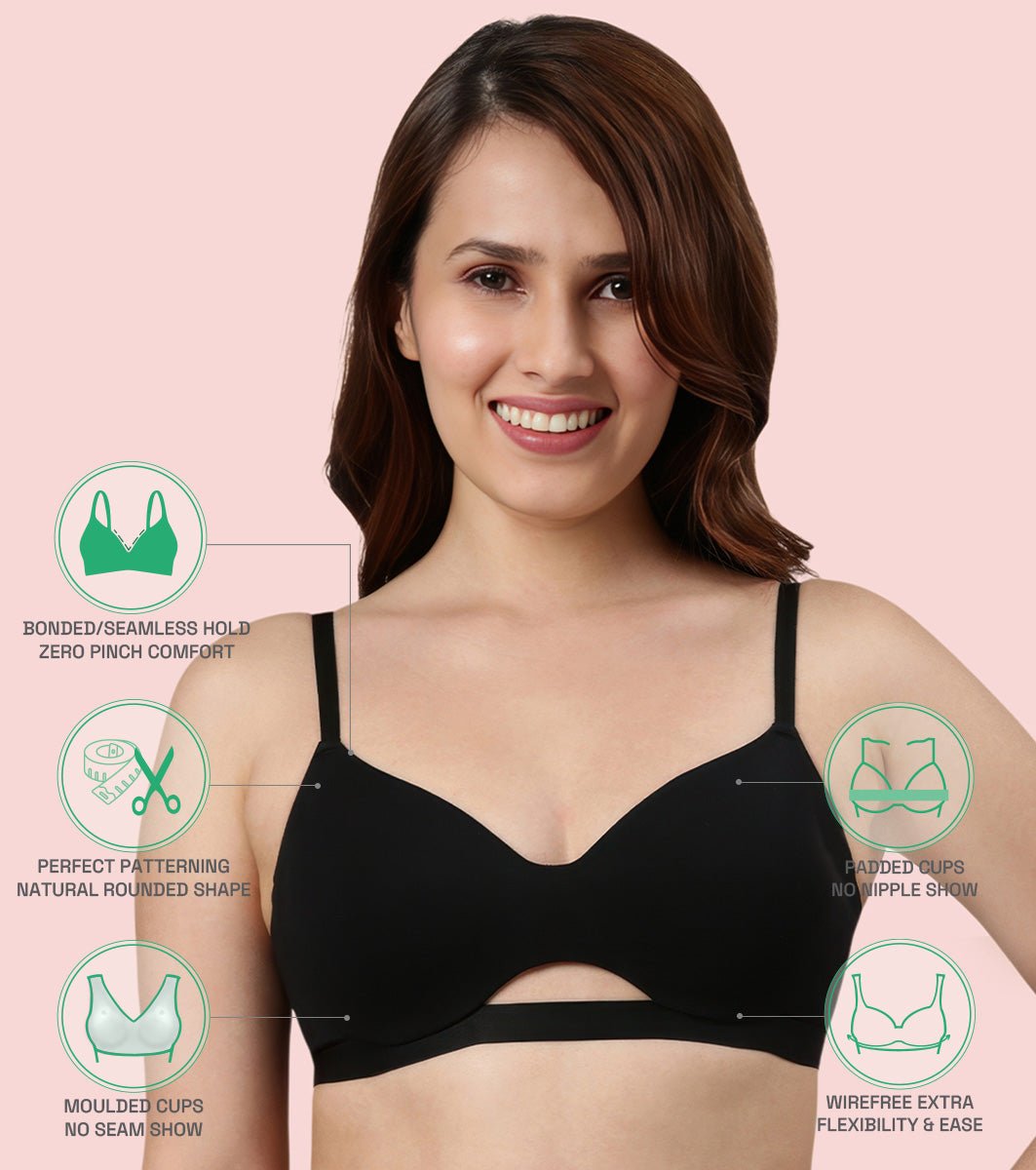 Enamor Innovations CloudSoft, Invisi Neckline Women’s Cotton Everyday T-Shirt Bra – Padded, Wirefree, Medium Coverage – A032