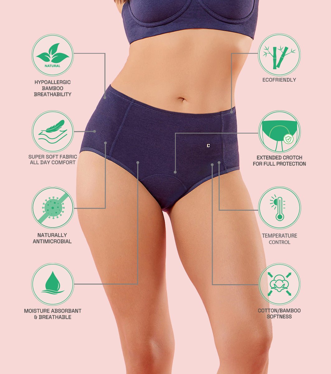 Stay protected and comfortable with our Bamboo Cotton Period Panty. Crafted from ultra-soft bamboo cotton for a breathable, stain-free experience, this style features an extra crotch lining for enhanced absorption. The extended protective lining at the back reaches up to the waist, ensuring leak-proof coverage and confidence all day. Designed for ultimate comfort and soil-release technology for easy care.