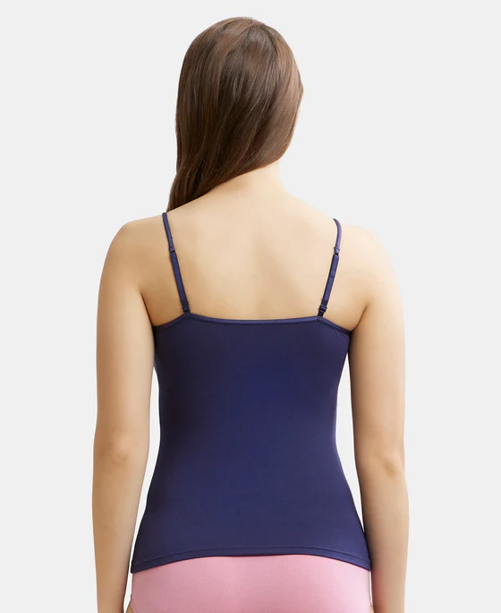 Elevate your everyday essentials with the Jockey Women’s Camisole, designed to combine comfort, style, and versatility. This navy blue camisole features a sleek design with slim spaghetti straps and a flattering straight neckline, making it the perfect layering piece under shirts, Kurtis, and tops, or stylish enough to wear on its own as loungewear or casual home wear.Crafted from premium stretchable fabric, it offers a soft touch and smooth fit that hugs the body comfortably without feeling restrictive. The breathable material ensures you stay cool and comfortable throughout the day, while the added elastane provides flexibility and ease of movement. Whether worn as an undershirt, a layering essential, or a relaxed sleepwear top, this camisole is designed to adapt to your lifestyle.Built with Jockey’s signature quality, the camisole is durable, retains its shape wash after wash, and provides a snug yet flexible fit. Available in a versatile navy blue color, it complements any wardrobe and pairs effortlessly with other essentials.